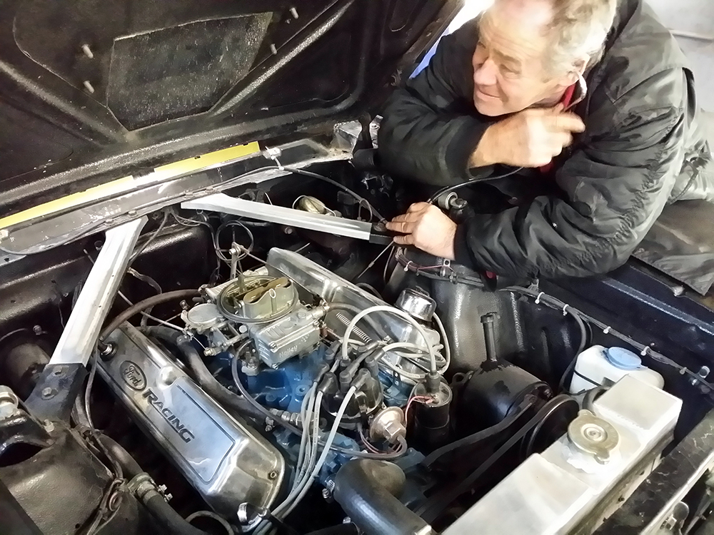 After such joyous events things can be a little heavy going the next day. Terry was working on a 289cid which was making some strange noises deep in the block. He decided it was going to be an old school diagnosis with his stethoscope which narrowed the noise to a particular cylinder. Terry even offered a full body medical with that long probe too. His kind offer was declined of course, needless to say the kettle was put on for hot cuppa.