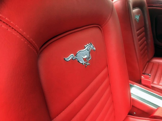 But before we let that happen here is a lovely ’65 with a beautifully done custom-made red leather interior. We have serviced the car and give her the now famous Mustang Maniac once over.