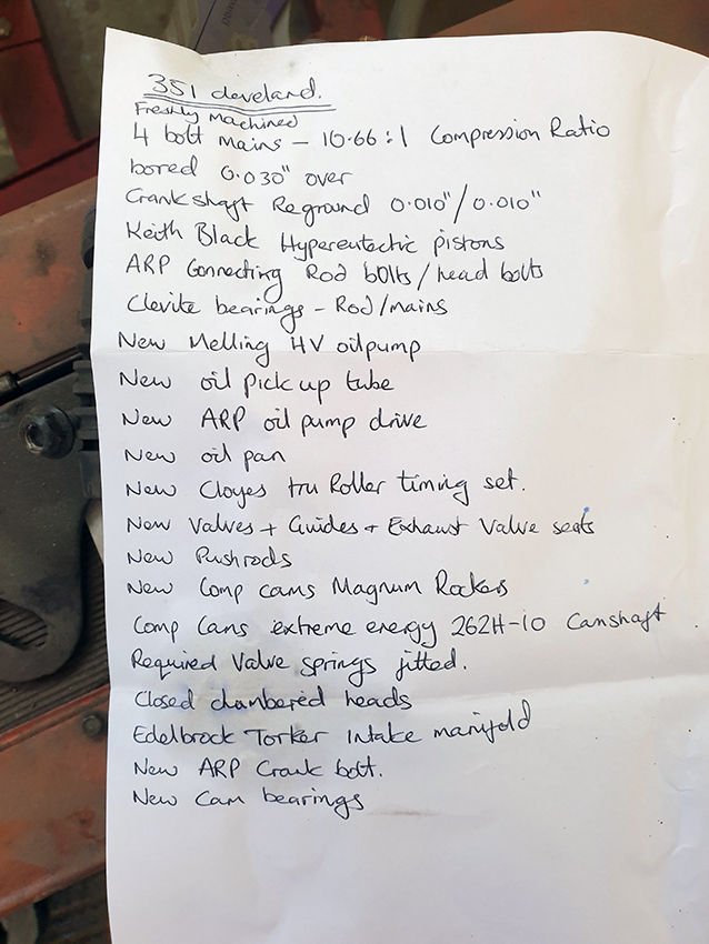 Each of the engines will have a report on the WebShop of what has been done, this is the rebuild spec for this Cleveland;