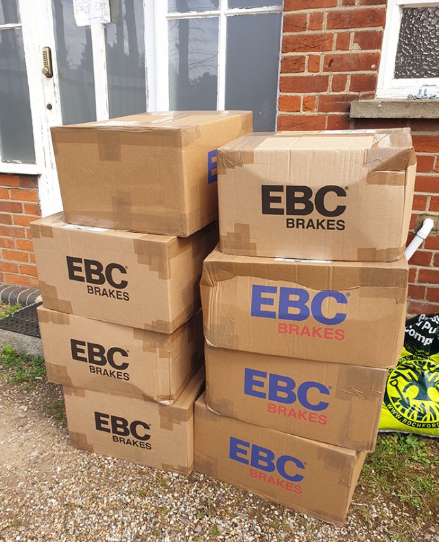 We mentioned the EBC stock had arrived which completed the range of brakes Adam was after. This was the last few boxes loaded from the lorry to the stock rooms.