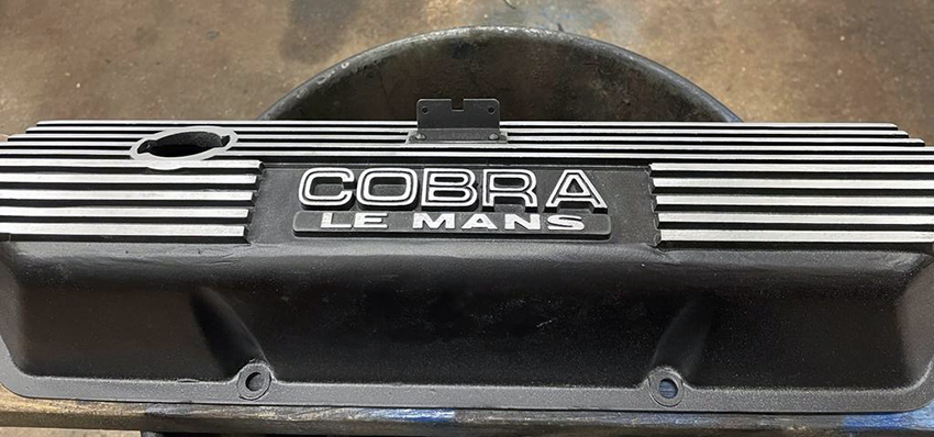 The valve covers were blasted, painted and then sanded to show the relief detail again.