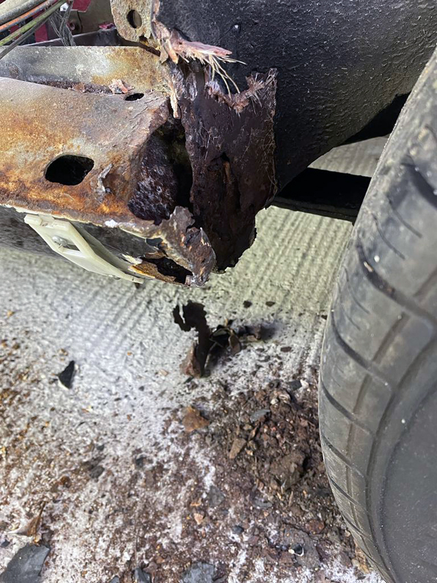Guys who in their right minds repairs rust with fibreglass!!! And surely that car did not get through an MOT test……goodness.