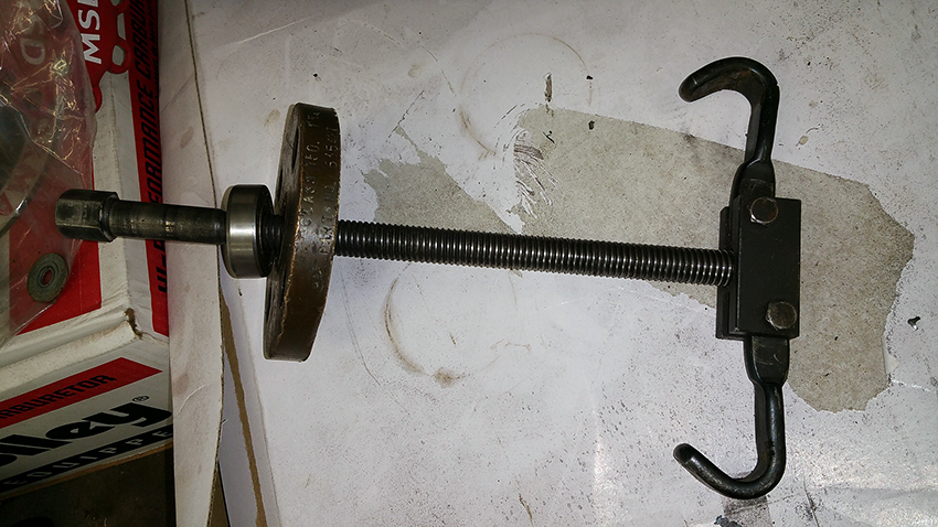 Connect your spring tool and tighten up to squash the spring. Extreme care should be taken with the springs.